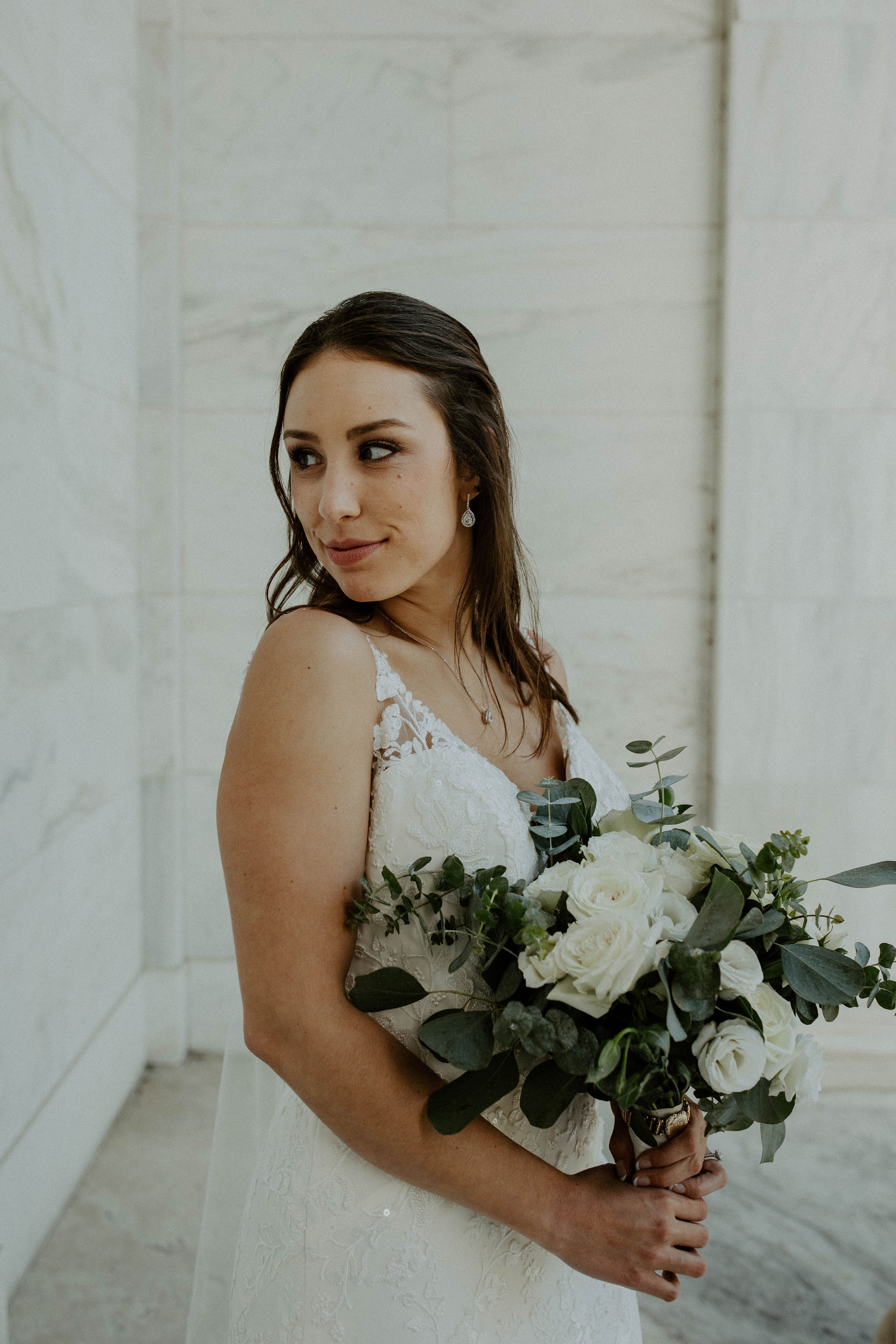 Located in an old warehouse in downtown Toledo, The Venues have the perfect backdrop for couples to bring their own personal vision and make it a reality. When our couple asked for a show-stopping hanging piece that could then be transferred to their reception head table, we couldn’t resist.